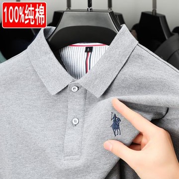 保羅2024夏季純棉男士短袖t恤翻領爸爸裝寬松刺繡大馬標重磅上衣