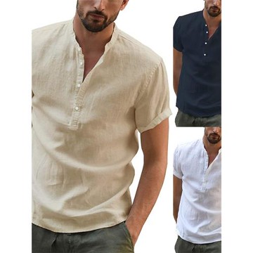 Casual圓領寬松休閑男士襯衫短袖