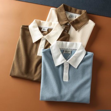 夏季新款 華夫格面料 撞色翻領設計 男士簡約休閑短袖T恤POLO衫