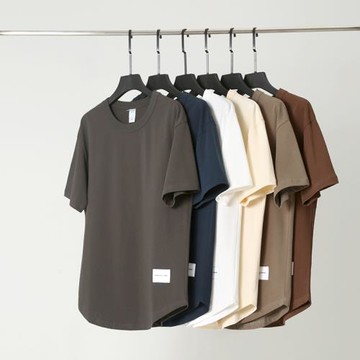 復古文藝!300g重磅高支全棉!外貿男裝夏季休閑圓領純色短袖T恤