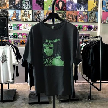 寺田克也插畫師印花潮牌短袖ins超火背后印花落肩袖t恤情侶款半袖