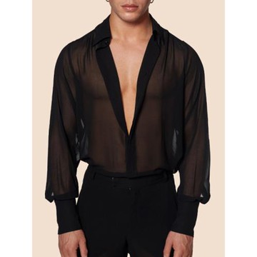 Men's shirts 男式襯衫 透視性感男襯衣 長袖寬松休閑男士花襯衫