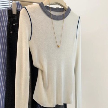 杭州四季青高端女裝廣州十三行秋冬上毛衣內搭打底撞色長袖針織衫