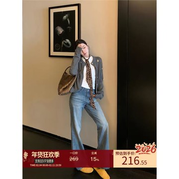 楊楊YANGRUOYU【藍城舊刊】闊腿牛仔褲女寬松直筒顯瘦復古休閑褲