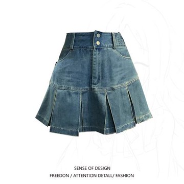 靈感系列 a字高腰牛仔半身裙女年夏季新款百搭顯瘦超短裙 H