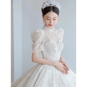 主婚紗2025新款新娘復古齊地在逃公主重工高級星空大拖尾法式婚紗