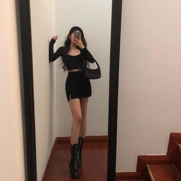 YoungGirlDay 歐美風性感高腰兩側開衩修身包臀A字半身裙短裙