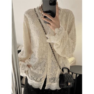 韓國東大門秋季新款雀梅百搭重工蕾絲打底花邊襯衣韓系內搭襯衫女