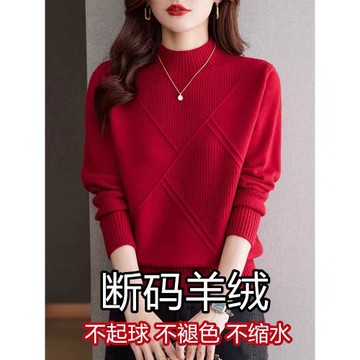 本命年羊絨衫女秋冬新款半高領羊毛打底衫爆款內搭加厚紅色毛衣