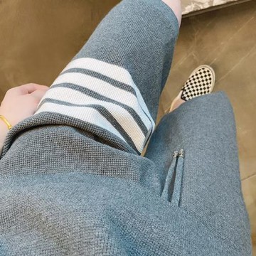 秋冬松緊高腰加厚韓版休閑闊腿褲