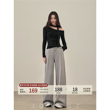 吵吵家韓系灰色蝴蝶結休閑褲女2025秋垂感直筒寬松闊腿西裝長褲