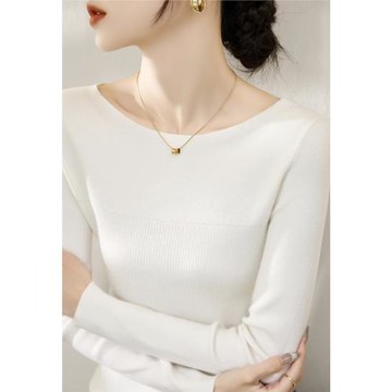 秋冬季法師高級感白色一字領毛衣修身內搭打底上衣純色長袖針織衫