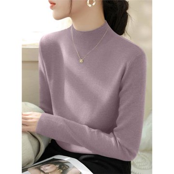 2024年冬季長袖修身針織毛衣女時尚半高領套頭新款內搭打底衫上衣