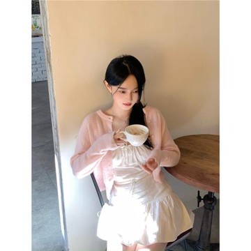 Cremedelacreme 羊毛馬海毛混紡粉嫩圓領針織衫開衫