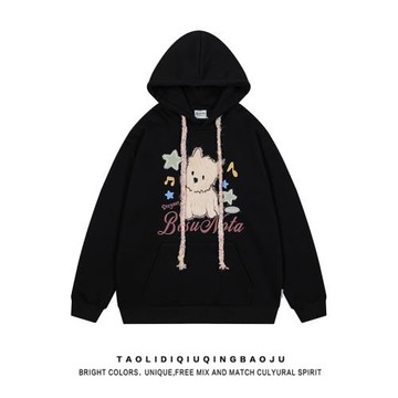 可愛毛絨絨小狗刺繡連帽衛衣女秋季情侶裝寬松休閑學院風灰色外套