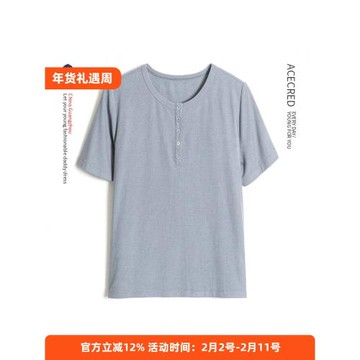 男士綿綢上衣夏季薄款圓領居家短袖T恤休閑大碼純色人造棉打底衫