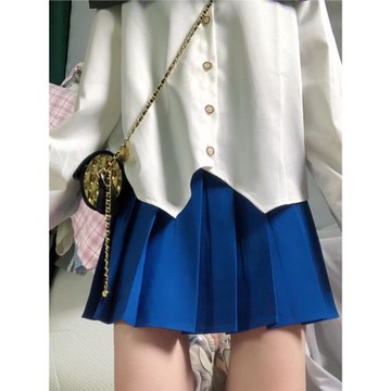 大碼短裙胖mm顯瘦褶皺高腰西裝半身裙寶藍色a字百褶裙學院風早秋