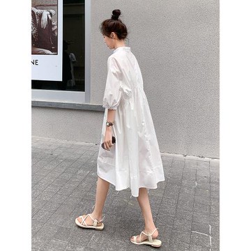 高級感白色襯衫連衣裙女夏2025新款小個子休閑寬松梨形身材娃娃裙