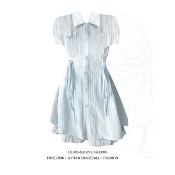 點我下載大碼胖妹妹糖霜藍莓系帶收腰襯衫短袖連衣裙女設計感套裝裙兩件套