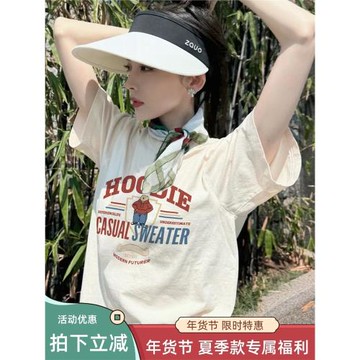 花兒與少年古力娜扎同款奶杏色小熊短袖t恤女寬松夏季甜美上衣服