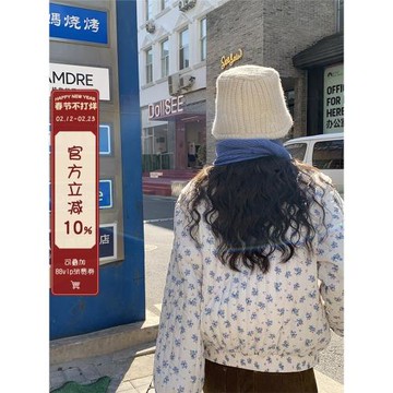 馨幫幫 自制薄款面包服冬季外套女韓系穿搭棉服立領短款碎花棉襖