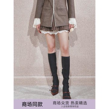 a la sha 抹茶揮揮手針織牛仔短褲裙