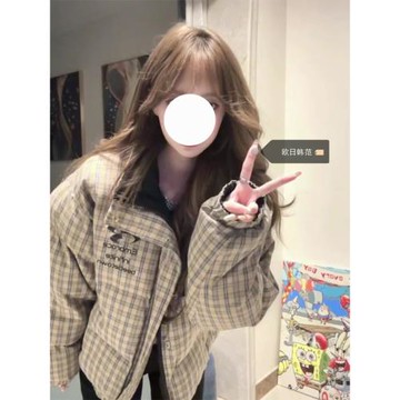 大碼美式雙面穿立領格子羽絨棉服女秋冬2026新款棉襖保暖夾棉外套