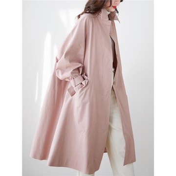 法式復古 文藝圖書館 少女氣質橡皮粉A字型風衣外套