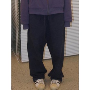 復古斜紋感闊腿褲 | 褲腳小卷邊設計直筒寬鬆 | 高腰休閒基礎長褲