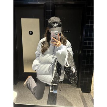 奶藍色棉服2026新款冬季小個子羽絨棉衣加厚韓系立領棉襖外套女潮