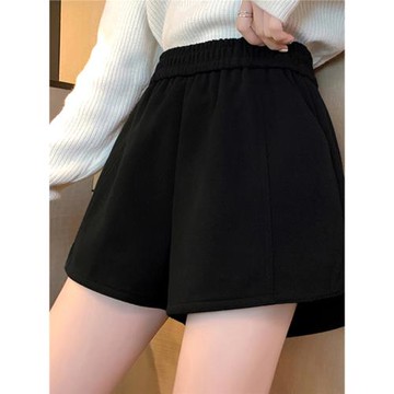 高端品質羊毛毛呢短褲女松緊腰寬松2025春裝新款加厚外穿靴褲子