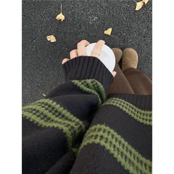 韓系條紋毛衣女秋冬松弛感休閑寬松慵懶風高級感軟糯內搭針織上衣