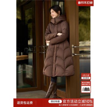 [618反季清倉]XWI欣未撞色收腰長款羽絨服女冬季顯瘦不臃腫外套