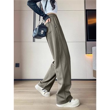 大碼直筒窄版香蕉褲女秋冬2025新款鐮刀褲胖mm垂感顯瘦運動衛褲子