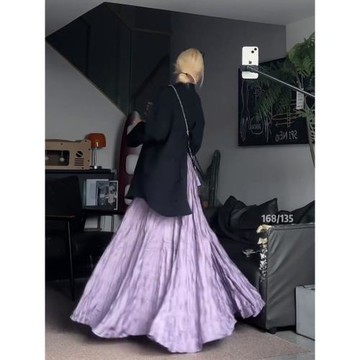 法式褶皺紫色高腰半身裙女秋季新款百搭氣質a字裙寬松顯瘦百褶裙
