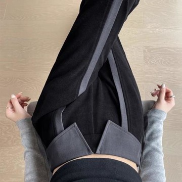 翻邊拼接西裝闊腿褲女秋冬新款高腰仿雪尼爾設計感窄版休閑直筒褲