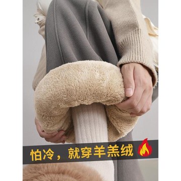 加絨加厚闊腿褲女秋冬2025新款冬季東北特厚外穿羊羔絨直筒棉褲子