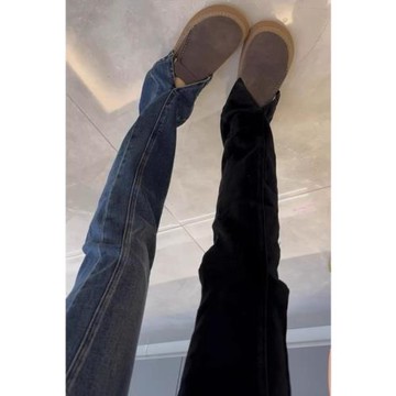 宋正恩黑色直筒牛仔褲女冬季寬松美式高街小個子慵懶闊腿拖地褲
