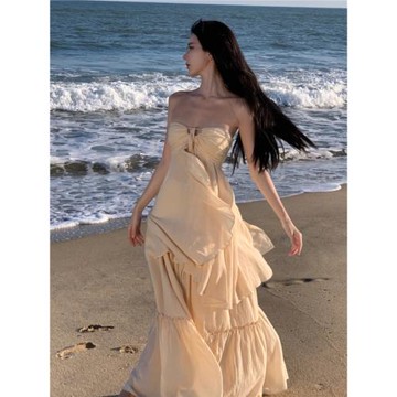 法式性感純欲風海邊度假套裝超仙抹胸上衣+超仙大裙擺半身裙女夏