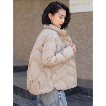 暖白色立領寬松加厚保暖白番鴨絨短款羽絨服