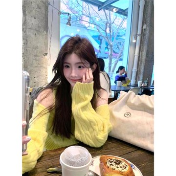 EAR RAE 耳朵仔子 琥珀柔霧 馬海毛微透針織套頭衫圓領寬松上衣女