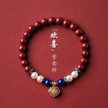 (免運)普陀山本命年護身符天然朱砂手串女款珍珠新中式純正紫金砂手鏈女