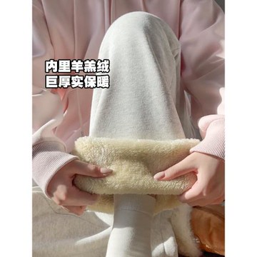 米白色闊腿褲女秋冬季休閑加厚羊羔絨棉褲2026新款加絨運動直筒褲