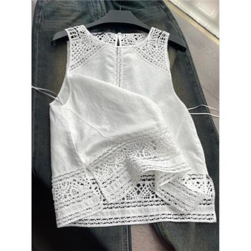商場大牌設計師自留白色蕾絲鏤空背心設計感小眾獨特別致無袖吊帶