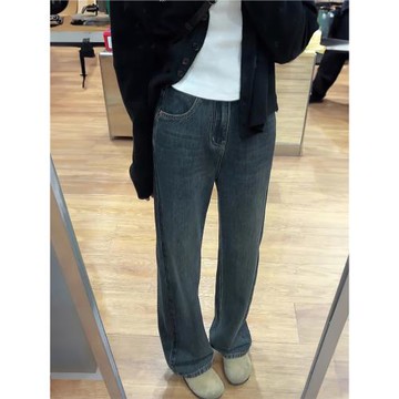 宋正恩黑色直筒牛仔褲女冬季寬松美式高街小個子慵懶闊腿拖地褲