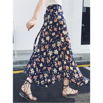 韓國chic夏季甜美氣質松緊高腰顯瘦花色碎花設計過膝長款半身裙女