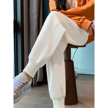 小個子加絨運動褲女秋冬2025新款白色束腳衛褲高腰休閑直筒闊腿褲