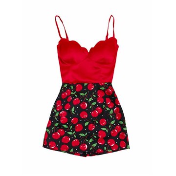 復古紅色吊帶連體褲短褲女高腰時尚櫻桃氣質收腰顯瘦裙褲一體夏款