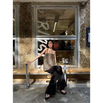 Pumpkin/夏季2024新款熱辣復古豹紋吊帶背心辣妹美式露背上衣女