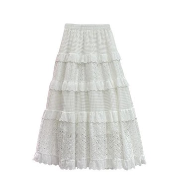 學院風白色蛋糕裙女春季高腰顯瘦裙子中長款花邊鏤空a字半身裙065